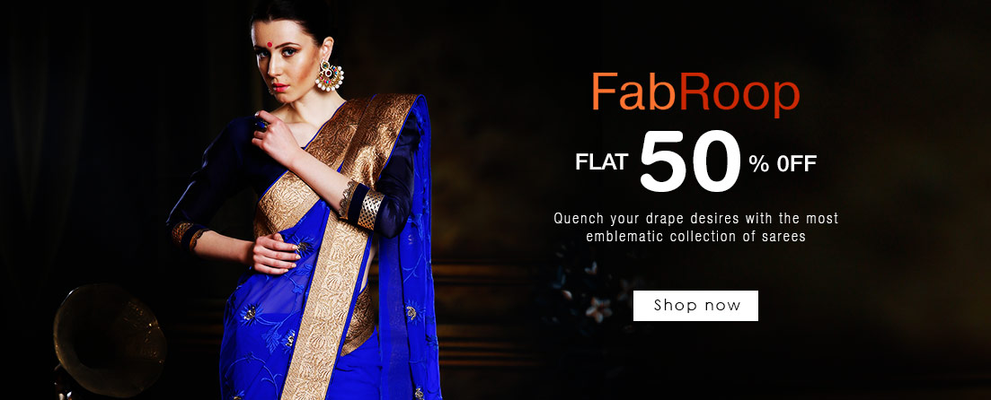 - Flat 50% off on Sarees + Extra 25% off along Online Payment